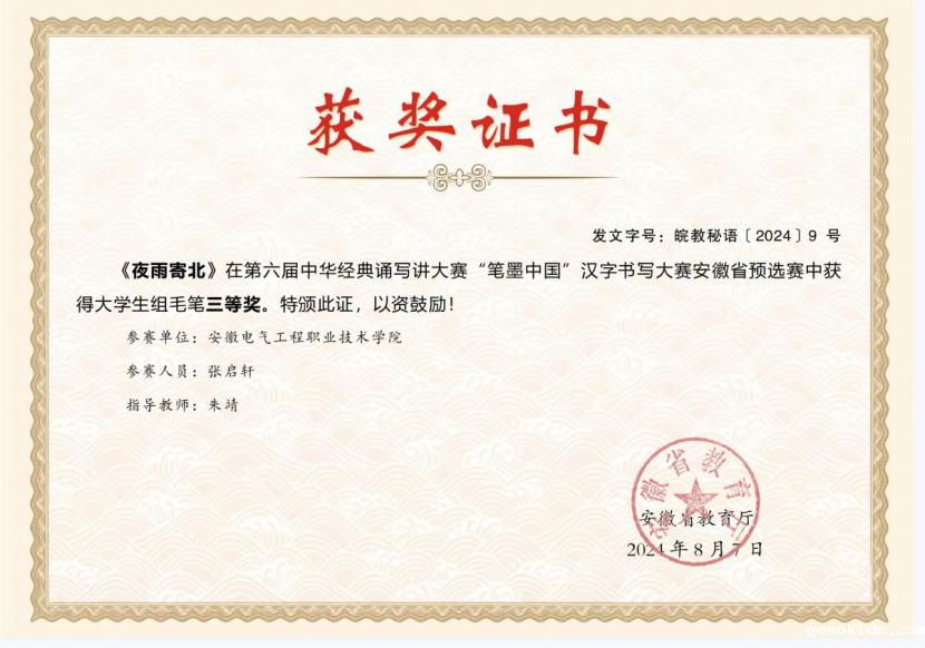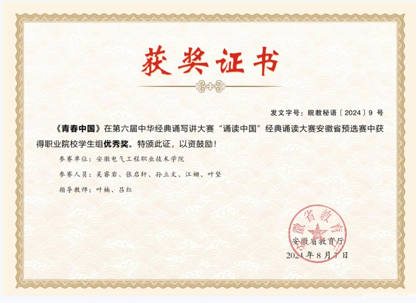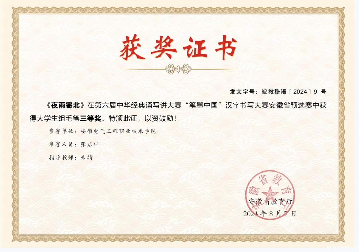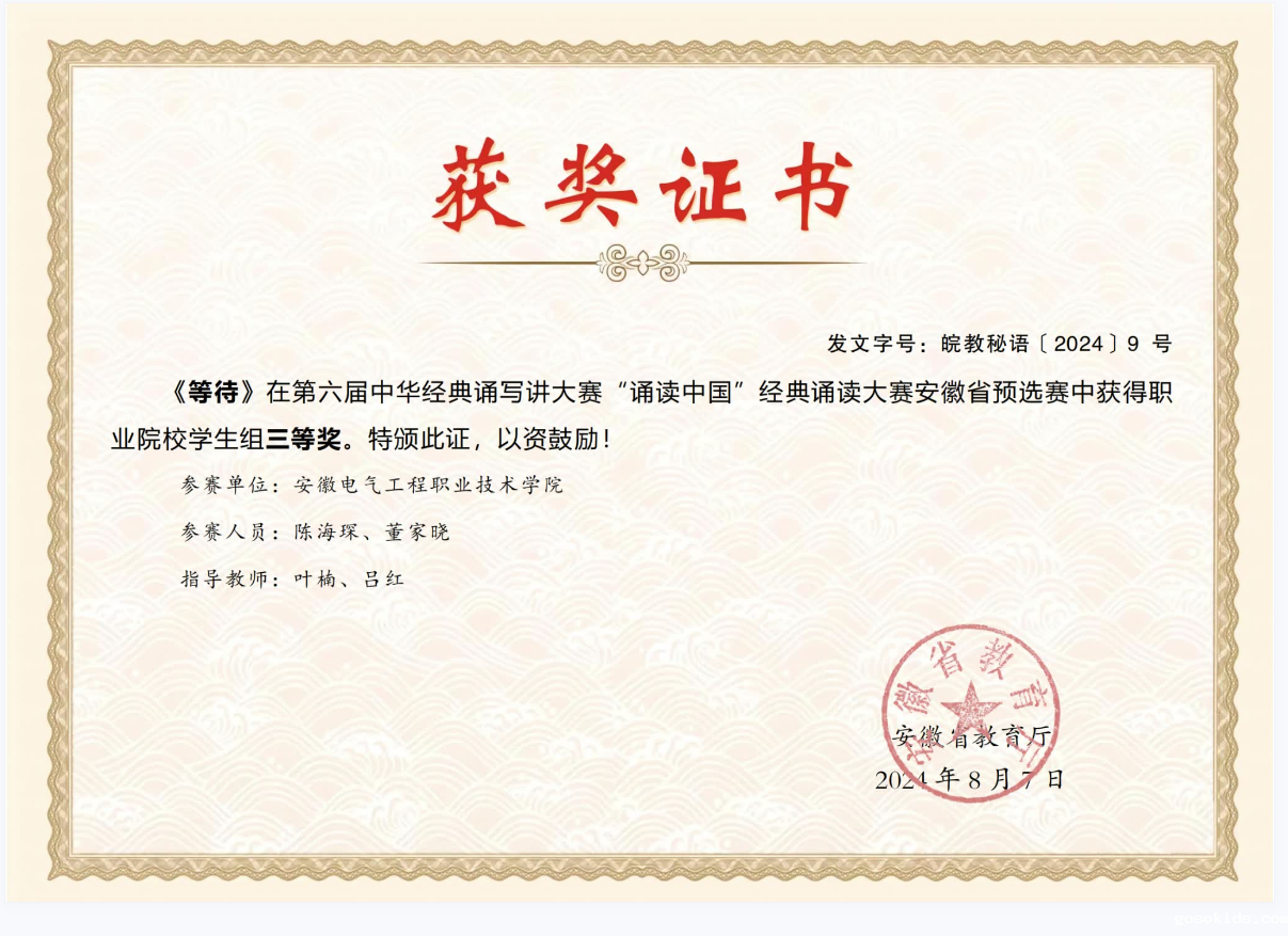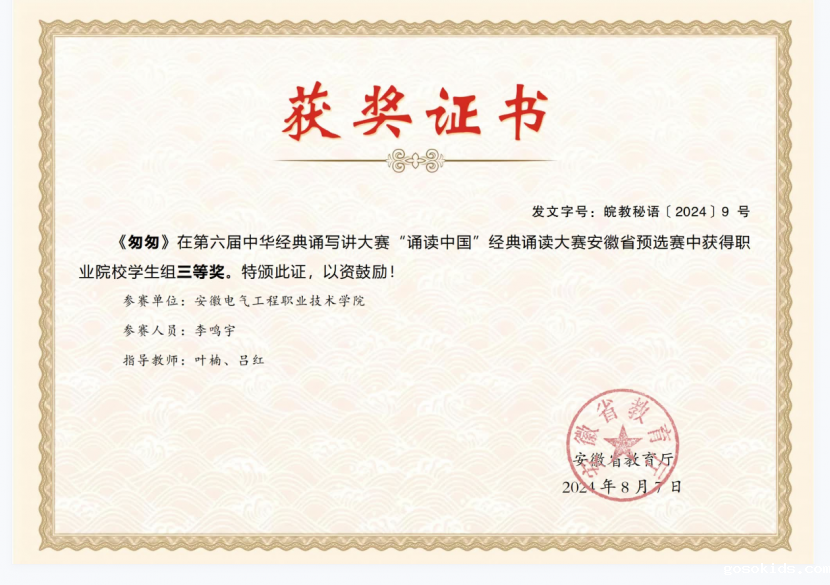 近日,由安徽省语言文字工作委员会、安徽省教育厅联合举办的第六届中华经典诵写讲大赛安徽省预选赛获奖名单公布,我院学子在此次比赛中表现优异,斩获多个奖项,实现突破。