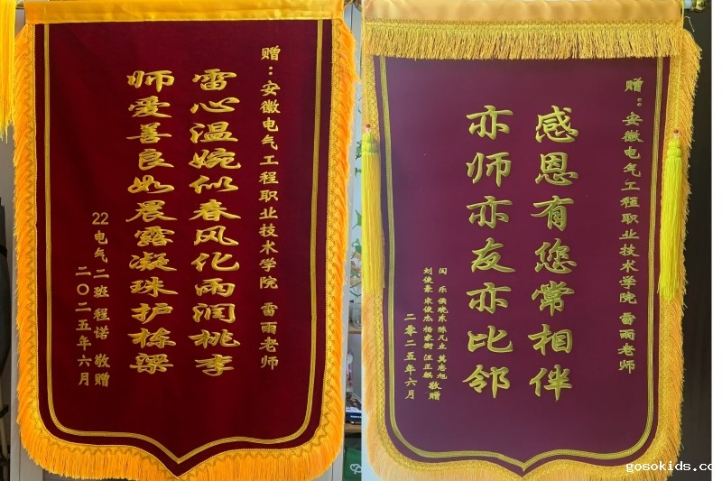 近日,一场温暖的双向奔赴,在学院自动化与信息工程系辅导员雷雨老师办公室温情上演:深红色的锦旗在微风中轻扬,金线绣就的字迹在光影里流转生辉——“雷心温婉似春风化雨润桃李,师爱善良如晨露凝珠护栋梁”、“感恩有您常相伴,亦师亦友亦比邻”。两面承载着25届毕业生拳拳心意的锦旗,静静诉说着一段跨越三年的师生情谊。